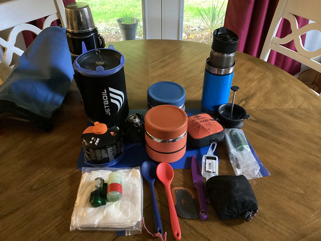 What’s in your kitchen kit? Part of the fun for me is to make my kitchen items lightweight and efficient. I have an expedition set that I use when there are potential long days paddling, and all I want to do is add boiling water and rehydrate meals. Then I have add ins for shorter trips that provide more room in the hatches for actually cooking meals.