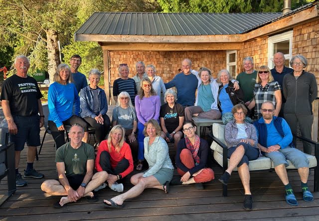 The annual SISKA trip to the Broken Group is hard to take. How can 24 people put up with it? Stunning paddles; extraordinary wild life – Humpbacks breaching around you, bears grazing on the grass or turning over rocks and shucking oysters in front of the lodge, salmon just about jumping into your boat. Yoga on the deck, then into the hot tub, followed by a hearty dinner and the sharing of (wildly exaggerated) stories of the day’s exploits.