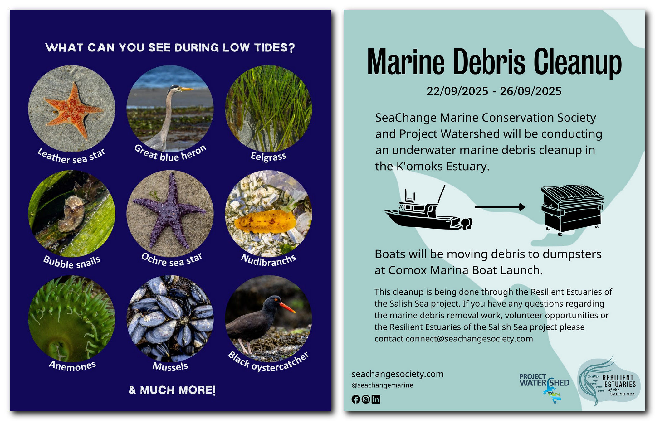 SeaChange is currently working on the Resilient Estuaries of the Salish Sea initiative which is focused on the small to medium sized estuaries of the Salish Sea and helping them maintain resilience against the impacts of climate change and increased human activity. SeaChange also has a large-scale mapping project, called ShoreZone, which provides publicly accessible information on our coastline to help with resource management, restoration and conservation initiatives, and emergency management planning.
