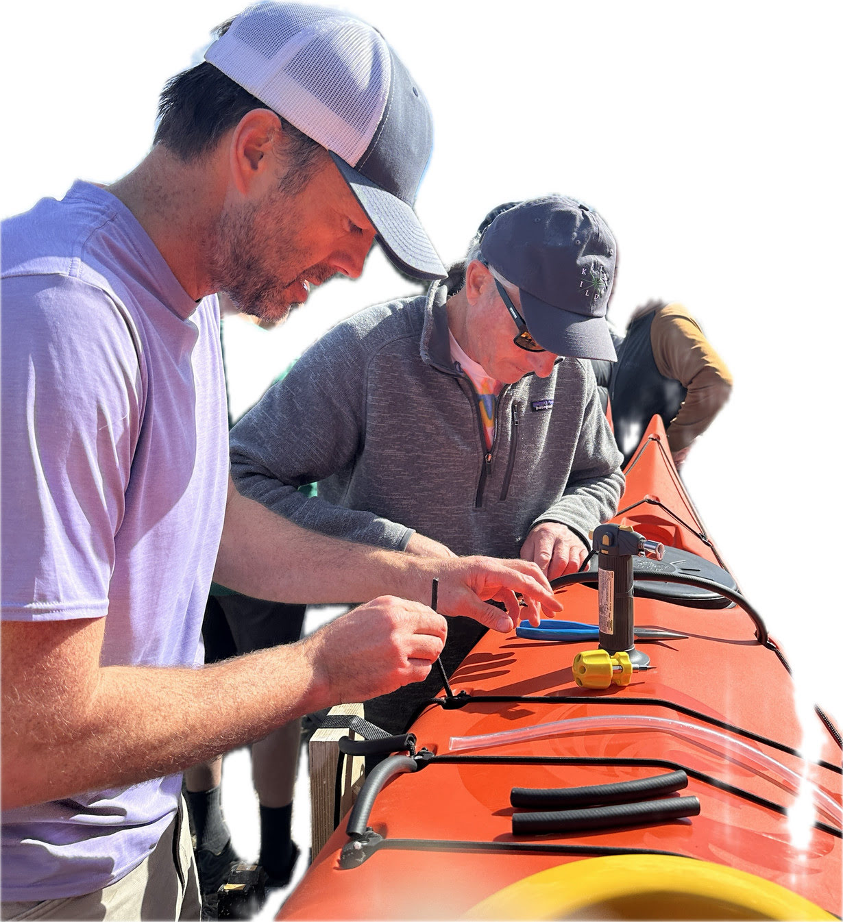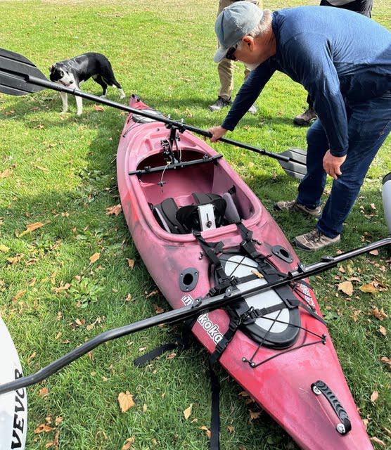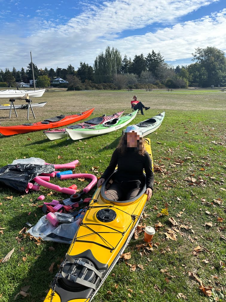 In the morning, members also appreciated the opportunity to once again have their kayak deck lines reinforced and/or their kayaks padded out for a snugger fit. Thank you Andrew and Konrad for the former, and Dorothea for the latter.